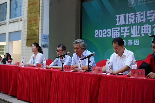 典礼初始介绍出席学部领导并全体起立奏唱国歌。环境学部党委书记刘泰东致辞,刘书记为同学们的人生道路指明了方向,给大家提出了殷切的希望的要求,请同学们牢记在心,在今后的人生道路上鞭策自己,奋勇前进。