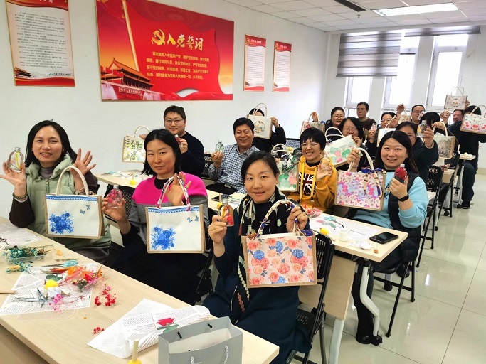 为迎接第114个国际劳动妇女节,丰富教职工精神文化生活,倡导低碳环保生活方式,3月6日至7日,环境学部工会、妇委会组织全体教职工开展“减塑保植”主题DIY活动,现场制作蝶骨巴特包和永生花浮游瓶,旨在倡导大家减少使用塑料制品,爱植护植。活动在彩石校区和长清校区分别进行。