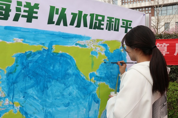 本次活动将课堂搬到户外,以户外科普展、手绘“海洋”等形式,宣传黄河生态文化和生态环保知识。活动现场,设有水处理实验、手绘“海洋”、手绘节水logo等互动环节,参与活动的同学们一笔一划将空白地球海洋涂成蓝色,以赤子之心共绘蓝色星球。