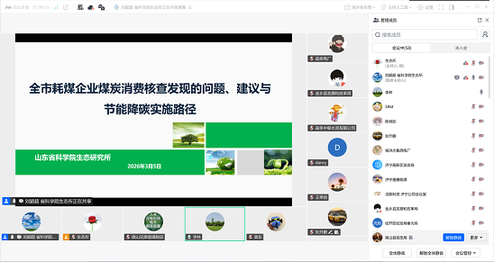 3月5日,由济宁市能源局主办,山东省科学院生态研究所承办的“济宁市耗煤企业能源消费统计线上培训会”顺利举办。会议由济宁市能源局能源节约和科技装备科副科长李林主持,济宁市统计局能源科相关负责同志、各县(市、区)煤炭消费压减工作主管部门负责同志以及济宁市规上工业耗煤企业能源统计工作负责人参加了此次培训。