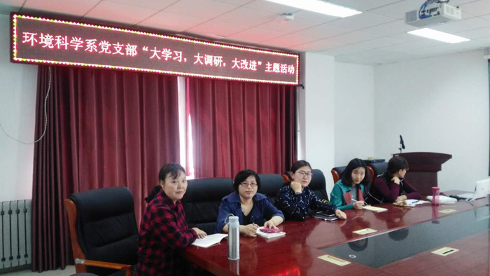 根据学校“大学习、大调研、大改进”学习教育工作安排,4月19日,环境科学系党支部组织开展了主题学习活动。