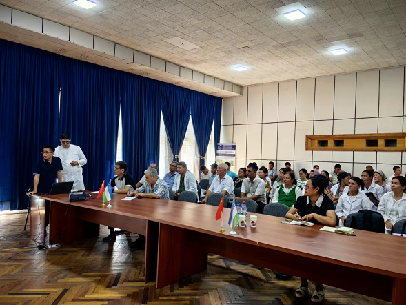 代表团参加了乌兹别克斯坦植物遗传资源研究所举办的有机农业生产经验与展望国际培训研讨会,会上吴远征副研究员介绍了山东省科学院生态研究所环境微生物创新团队的研究成果,魏艳丽研究员做了“黄河三角洲盐渍化土壤的生物修复技术”学术报告,介绍了环境微生物研究室的研究方向、科研进展及国际科技合作情况,系统展示了团队在木霉菌资源库建设、植物病害生物防治、耐盐植物资源收集评价及中重度盐渍土壤生态修复等方面的研究成果;并与植物遗传资源研究所科研人员围绕小麦、棉花、葡萄、高粱等经济和设施作物的种植模式与种质资源以及土壤连作障碍问题与应对措施进行了交流探讨。