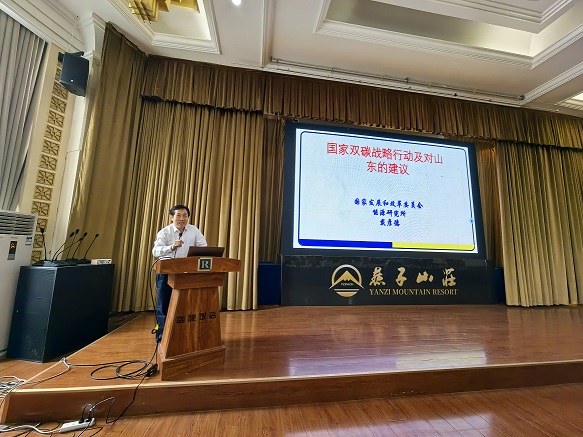许崇庆作了题为《扎实推进山东省绿色低碳高质量发展先行区建设》的报告,从能源低碳转型的背景和形势、能源低碳转型的意义和挑战、山东的现状与问题、构建新型能源体系推进山东高质量发展等方面对山东省推进绿色低碳高质量发展进行了系统阐述和深入讲解。