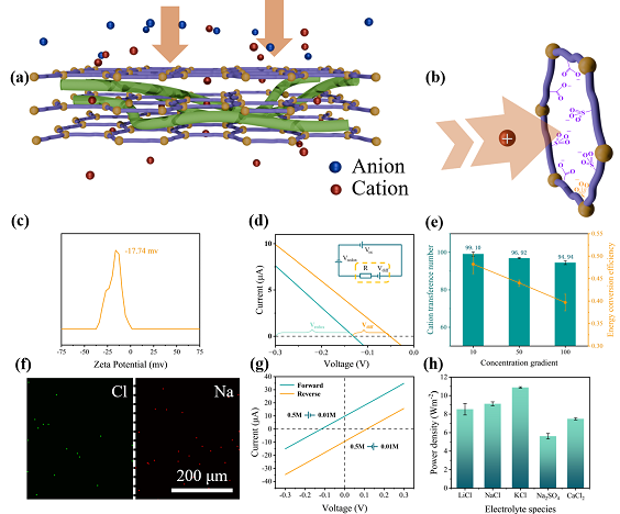 能源转型背景下,渗透能技术以其环境适应性与高效能量转化特性成为当前清洁能源研究的前沿,其中反向电渗析(RED)的核心突破点在于离子选择性膜的性能优化与实际应用。三维网络聚电解质水凝胶通过带电单体构建的多孔架构,兼具高离子选择性与低成本优势。但该材料存在过度亲水引发膨胀形变等问题,导致机械/电化学性能衰退,影响其长期收集渗透能的工程可行性。进一步简化制备工艺并强化环境适应性,将成为该材料产业化应用的关键突破方向。