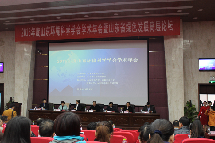 11月2日下午,由山东环境科学学会主办,齐鲁工业大学、山东师范大学、山东大学及山东省环境保护科学研究院联合承办的2016年山东省环境科学学术年会暨山东省绿色发展学术论坛在济南隆重举行。中国科学院院士江桂斌研究员、山东师范大学校长唐波教授、等专家和山东省科协、山东省环境保护厅等领导出席会议。