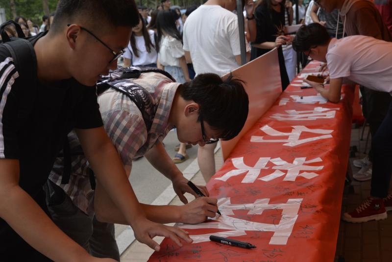 校学生会直属团支部在三餐前举办了以“为垃圾分类助力,给绿色工大添彩 ”为主题的签字活动,倡导广大师生积极投身于环境保护,用实际行动来为校园的美好环境做出自己的贡献。