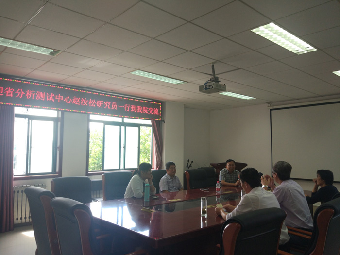 王晨院长对赵汝松研究员一行表示了热烈欢迎,他向来宾简要介绍了环境科学与工程学院发展历程、专业建设、师资队伍、人才培养等基本情况。赵汝松研究员对环境学院的热情接待表示了感谢,并介绍了省分析测试中心的现状、人员组成、科研成果等情况。双方就环境方向学生培养、产学研合作以及课题研究等问题进行了探讨。