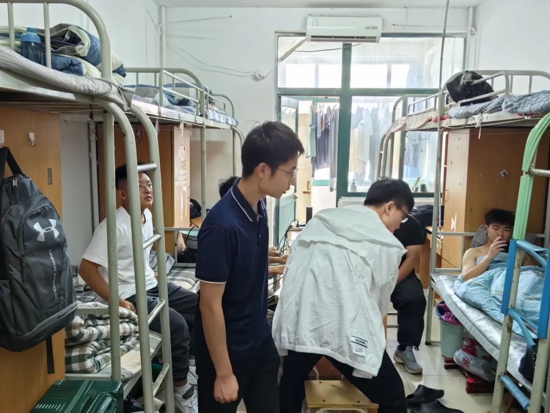 杨老师对新生的到来表示欢迎,亲切地询问大家对大学阶段的期待与憧憬;叮嘱新生遇到困难要第一时间与辅导员联系,并对新生寝室进行了一系列排查,检查寝室内是否存在安全隐患,同时告诉同学树要立防诈骗意识、保护自身财产安全,不随便相信他人;杨老师还强调舍友之间一定要团结友爱,互帮互助,并提醒大家早秋时节早晚温差较大,注意及时增减衣物,预防感冒。