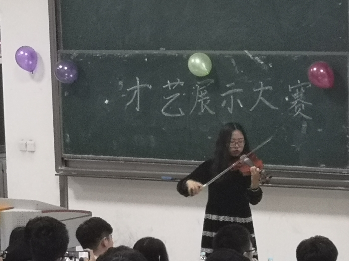 那是在下午六点半开始的,在一众同学的期待下,优雅又不失风趣的主持人揭开了这次大赛的序幕。首先上场的是一首民谣《农夫渔夫》,清新的音调中隐含对未来美好生活的向往。接下来的小提琴又把同学们从这向往中拉出,优雅的小提琴与现代音乐的碰撞,瞬间营造出优雅的氛围。主持人才艺比拼展现的绝妙口才,歌曲《煎熬》带来的听觉盛宴,相声小品带来的欢笑,把这场大赛的气氛推向高潮。最后,三位同学带来的是一曲吉他弹唱《可能否》,错过,遇见,这种种遗憾的语句中又不失对生活的期待。在这温暖的时刻里,本次个人才艺大赛也接近尾声,在裁判紧张的打分总结后,本次大赛的名次也终于出现,颁奖过后,本次大赛也圆满落下帷幕。