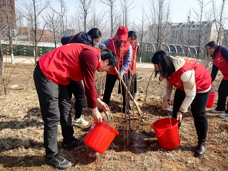 刘泰东作动员讲话,他指出,深入贯彻落实***生态文明思想,丰富学部党建文化,以植树节为契机,营造良好的生态育人氛围。党员、团员带头参与,率先垂范共植绿树,以实际行动践行绿色发展理念,营造绿色和谐的校园环境。每一棵树都是我们对自然的尊重和对未来的承诺。在植树过程中,每一位参与者都体会到植树造林对于生态环境的重要性,每位师生都以高度的责任感,精心栽种、细心呵护,确保每一棵树苗都能茁壮成长,为校园增添一抹新绿。