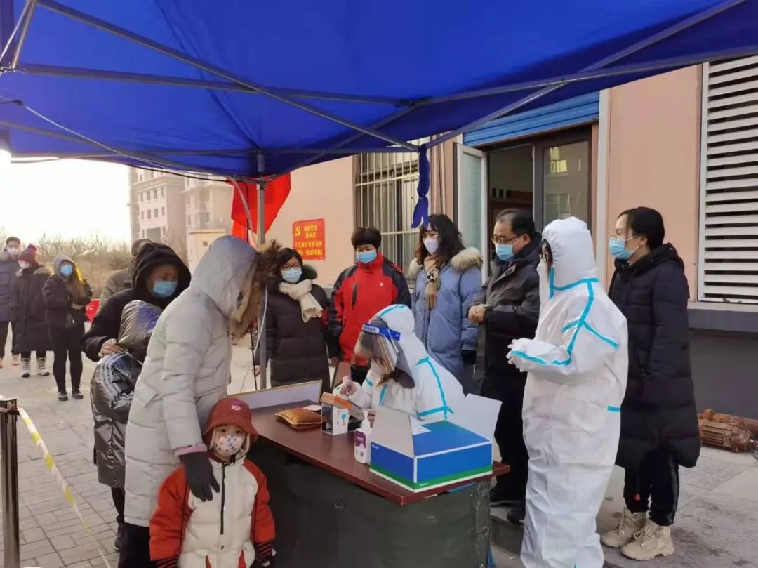 我和小伙伴毫不犹豫的到村委会报名参加了核酸检测志愿服务工作,我被分到的工作是录入居民们的信息,在居民们做核酸之前扫描他们的身份证信息,后来,又跟着医生入户做核酸,我们穿着厚重且闷气的防护服,行动起来十分不便。我们社区一次筛查大概需要十个小时左右,坐在外面,即使穿着防护服也是抵御不了凛冽刺骨的寒风,经过一次筛查下来,我们的手被冻得稍显红肿。虽然天气寒冷,但是居民的热心带给了我们无限温暖,做核酸过程中有居民为我们送来热水瓶暖手,有人亲手给我们冰冷的椅子上贴上暖贴…… 哏儿都人民一定会战胜“奥密克戎”的,天津加油!天津必胜!