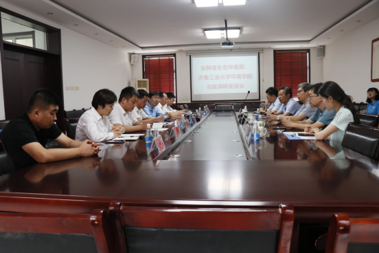 7月8日上午,于东阿县生态环境局会议室召开东阿县生态环境局与齐鲁工业大学环境学院实践调研座谈会,双方进行了深入洽谈。东阿县生态环境局党支部书记曾令法担任会议主持,齐鲁工业大学环境科学与工程学院党总支书记刘泰东、环境科学与工程学院院长王晨、齐鲁工业大学团委副书记张天晓、环境科学与工程学院党总支副书记崔灏、环境科学与工程学院团委副书记吕磊、辅导员尹吉亭;东阿县副县长张磊、党组成员、环境局副局长孟宪民、政工科科长曹帅、环境监察队队长程珂、王通、卓睿、环境监测站站长柳海燕出席会议。此次座谈会,拉开了实践活动的序幕,对促进“校地共建”有着重要意义。面对新时代的机遇和挑战,双方紧密合作互利共赢:学生为当地的生态发展建言献策的同时,使自己对环保的认识更加深刻;当地为学生提供实践基地配合工作的同时,获取了学生专业知识的帮助,促进了发展。