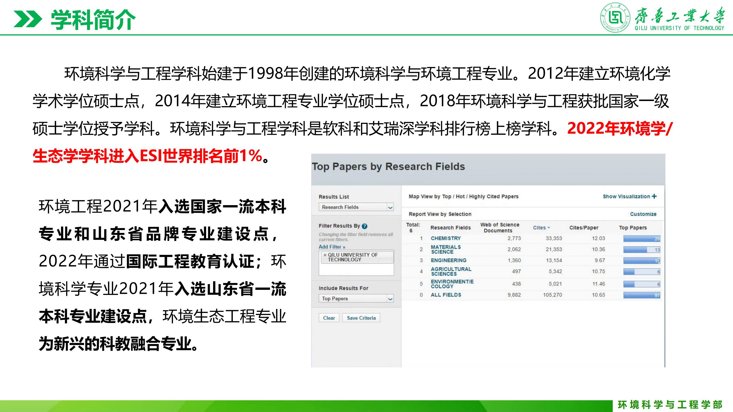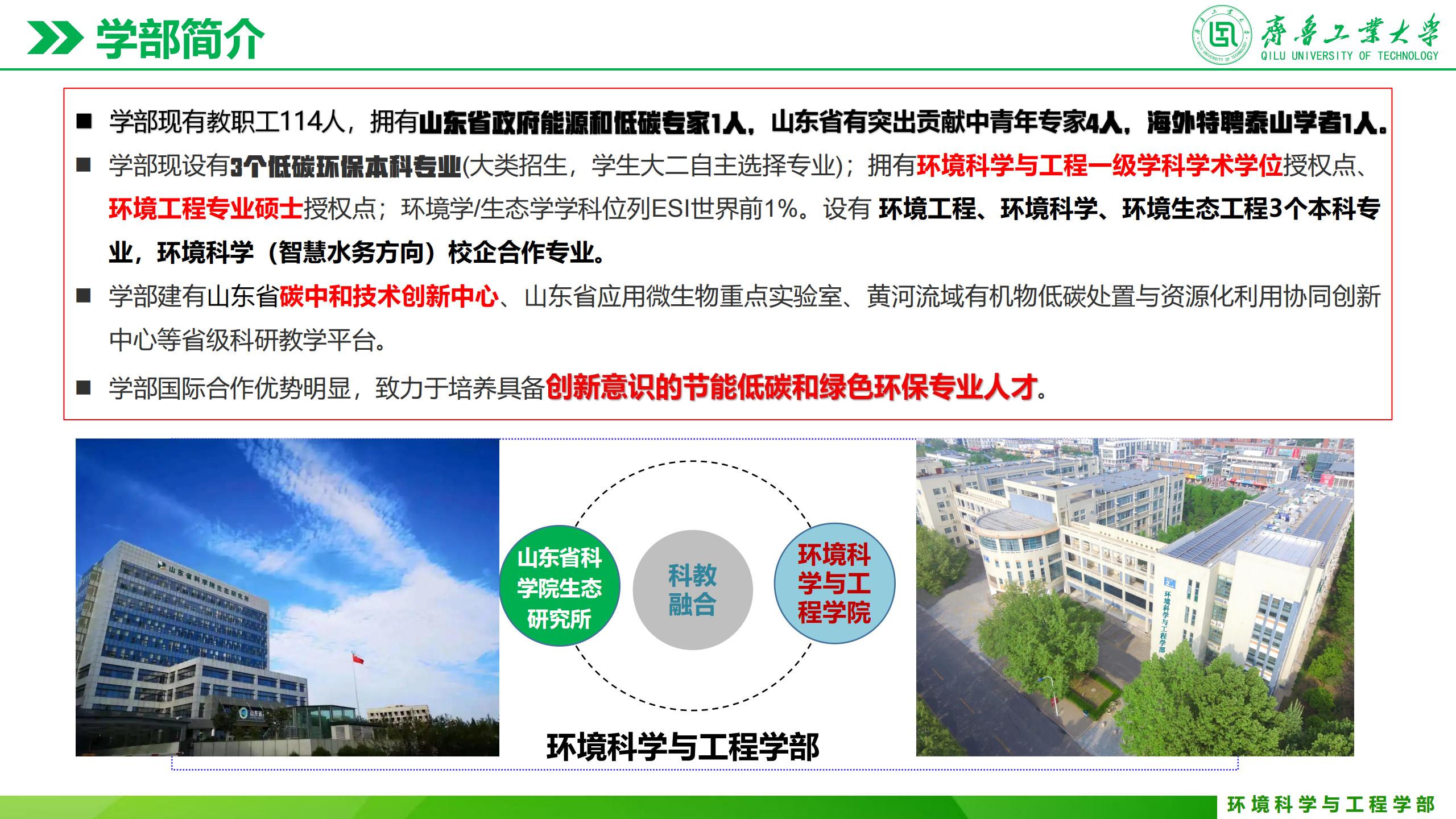 2024年环境科学与工程学部招生简介(点击该链接预览PPT) 报考联系电话:0531--89631930 于老师